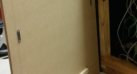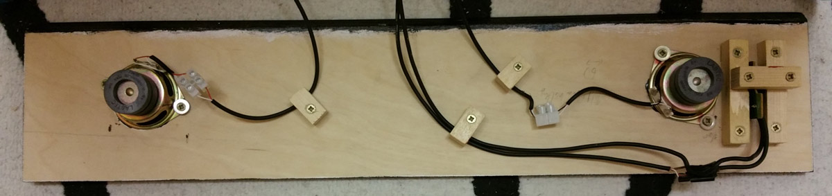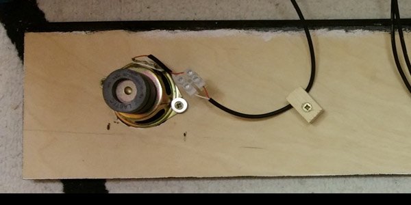 Als nächstes wurde der Sound eingebaut, das Brett kommt direkt unter die Unterseite des Marquee. Ich habe ein altes Soundsystem ausgeschlachtet und den Volumeregler auch mit eingebaut, damit man nicht nur softwareseitig die Lautstärke ändern kann.