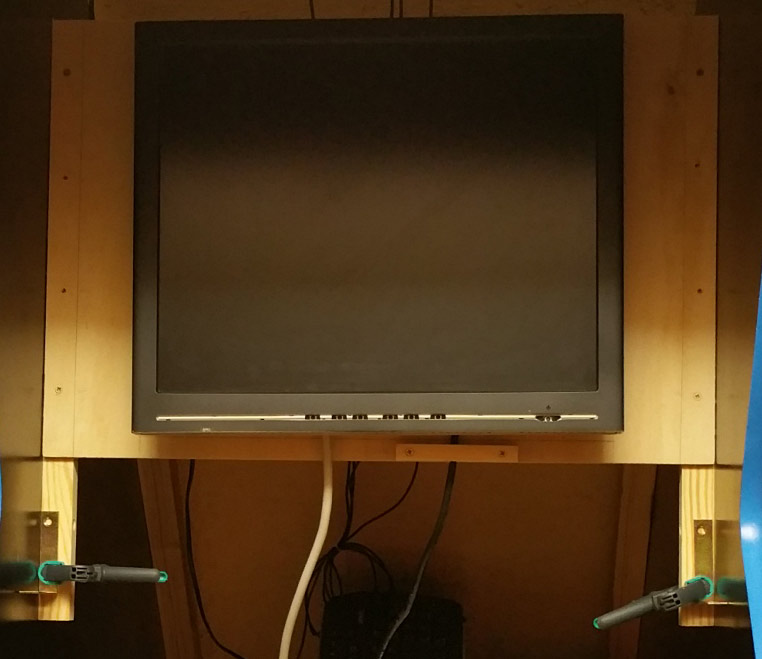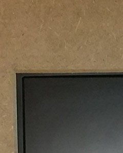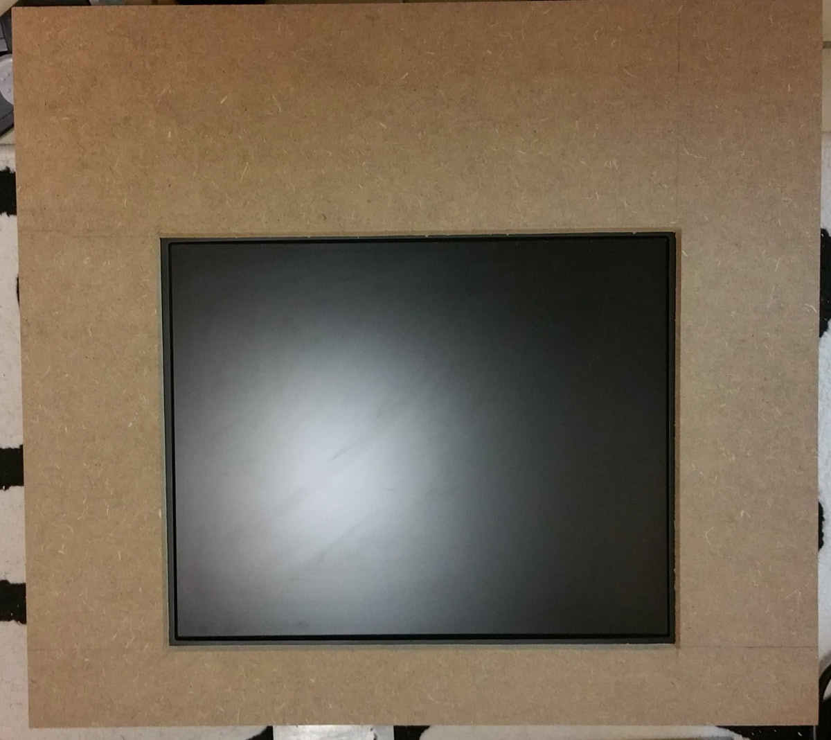 Der Bildschrim wurde in gewünschter Ausrichtung eingebaut, die Winkel tragen dann die Passepartout inkl. Plexiglass (mit evtl. Bezel)
