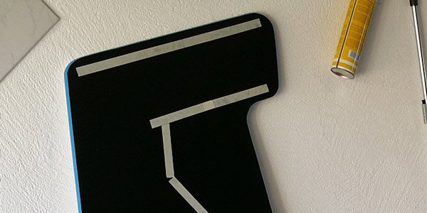 Zum Schluss war noch das Control-Panel dran. Davor hatte ich den meisten Bammel. Viele Varianten sind da möglich. Die Push-Buttons haben eine maximale Einschraubdicke, hier ca. 6mm. Das heißt meine Vatiante ist sehr knapp, 2mm Plexi, dann die laminierte Folie und dazu dann noch die Multiplexplatte drunter. Mein Ziel war den Joystick einzubauen, ohne dass man die Verschraubung sieht. Das geht nur, in dem man die Folie über die Multiplexplatte legt und nicht klebt, denn wenn ich klebe kann ich den Joystick im Reparaturfall nicht mehr ausbauen, ohne die Folie zu zerstören.