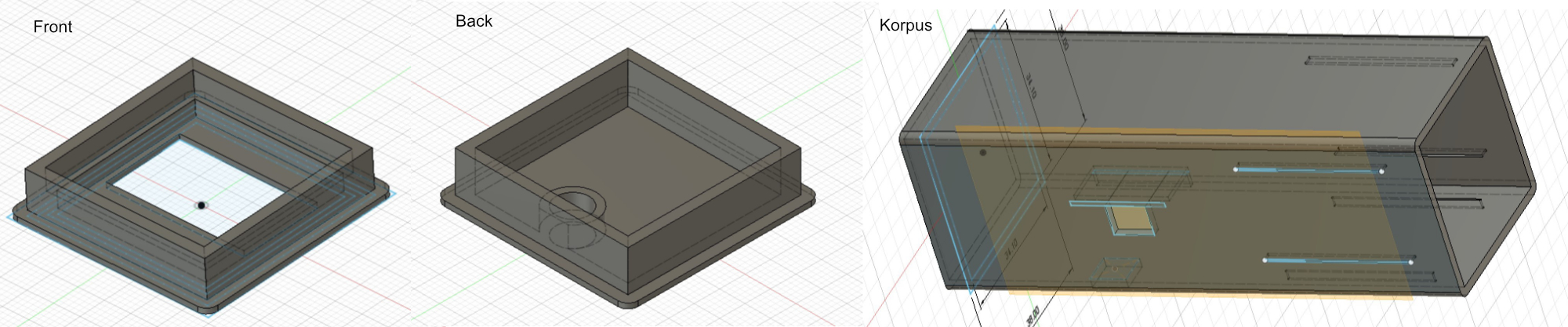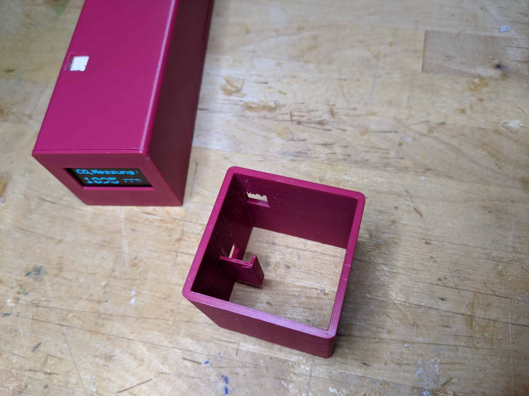 Rückteil und Korpus, der Korpus hat an der passenden Stellen Fenster für den Gasaustausch und im Inneren eine Halterung für den CO2-Sensor.