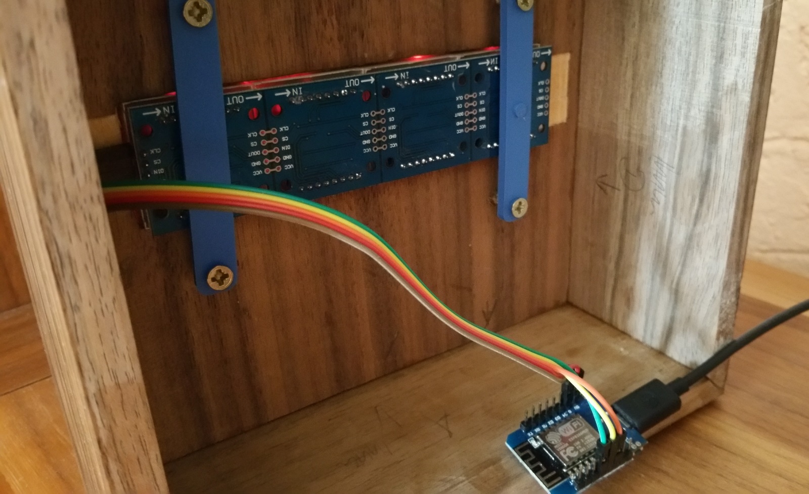 Sie basiert auf einem Arduino ESP 8266 (WEMOS) mini d1 r2 der günstig zu bekommen ist, auch das passende Display (8x32 4 in 1 Dot Matrix MCU LED Anzeigemodul für Arduino) kostet nicht die Welt. Die passenden Skripts für den Arduino und Anleitungen findet man auf GitHub hier.
