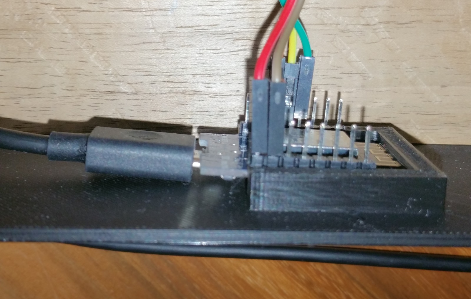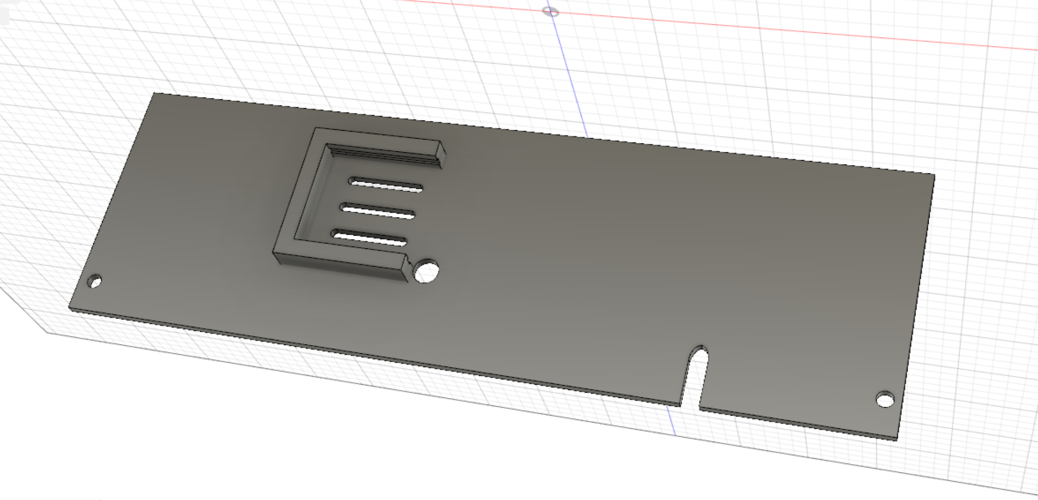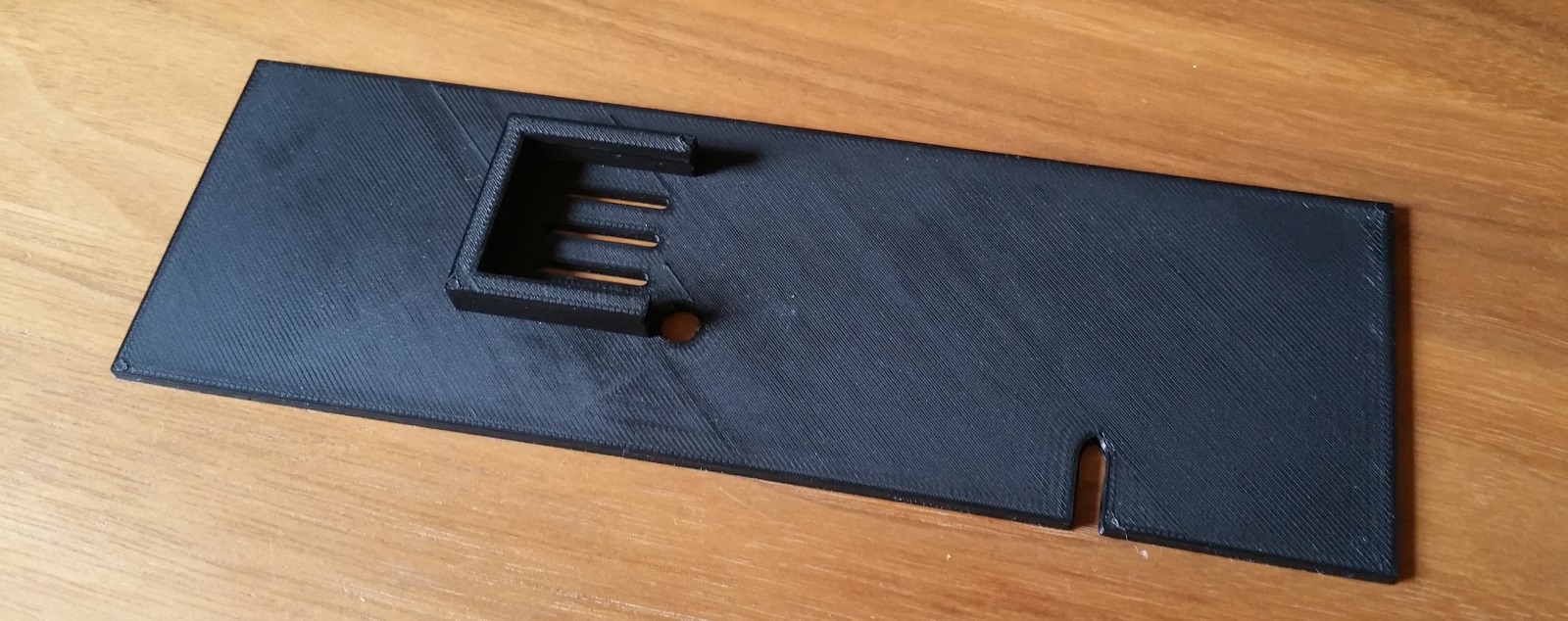 Der Arduino sollte an einer Teilabdeckung für die Rückseite befestigt werden können. Ein Loch soll die Resettaste immer erreichbar machen, und der Kabeldurchgang klemmt das Mini-USB-Kabel soweit ein, dass es auch bei Zug nicht aus dem Stecker rutscht.