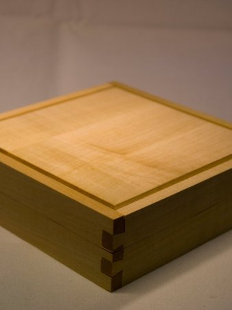 Eine kleine Schmuckschatulle außen Ahornholz, Bode...